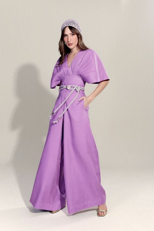 Modelagem queridinha entre nossas clientes, é conhecida por possuir efeito alongador. Feita em linho puro, com cintura alta e detalhe como vivo no cós, bolso verdugo e botão de crochê. Peça forrada.